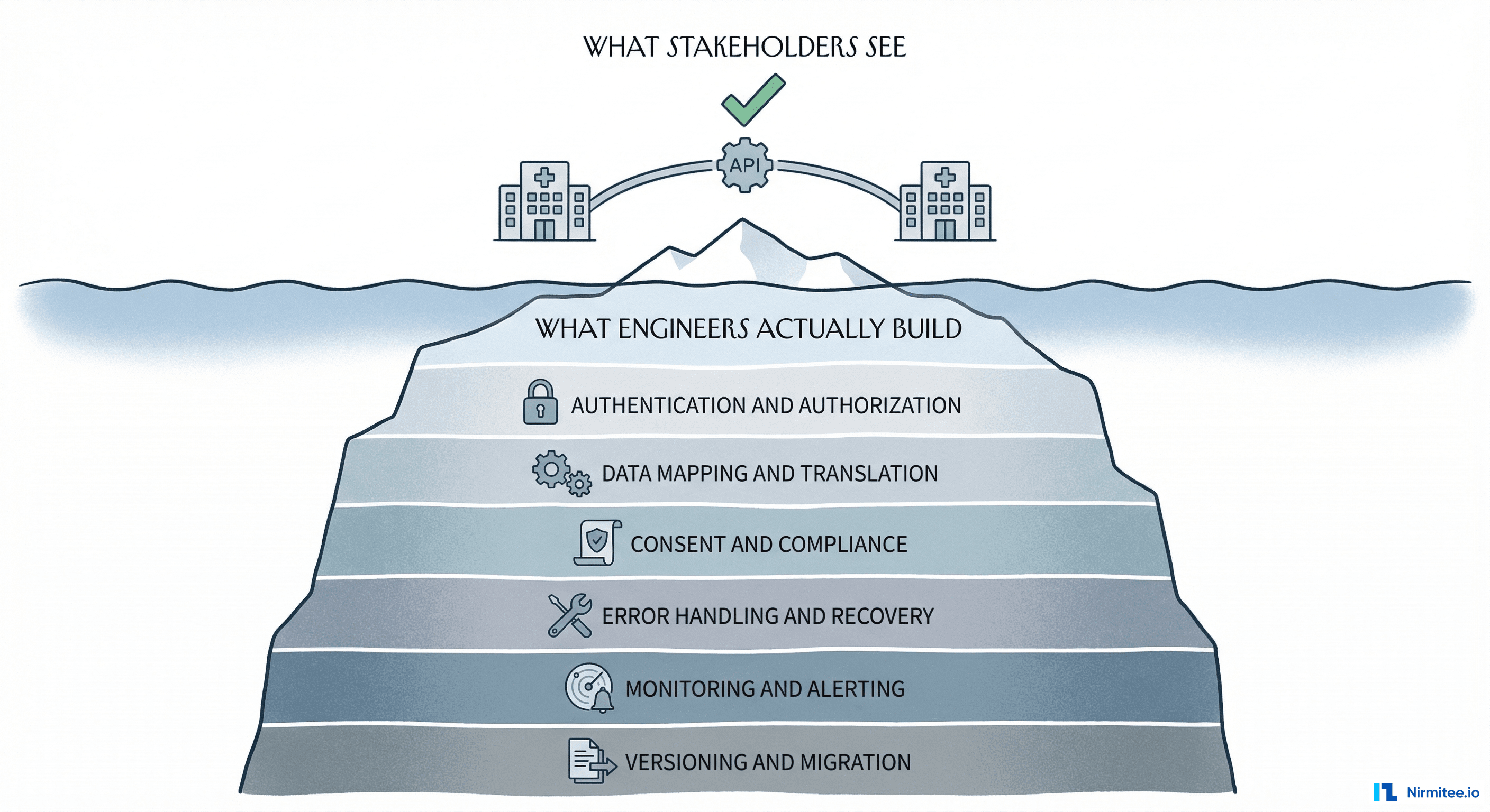 At Nirmitee.io, we have built dozens of healthcare integrations across EHR systems, claims processors, lab networks, pharmacy platforms, and national health exchanges (ABDM in India, FHIR-based systems in the US). This article is the mental model we use internally — the framework that helps us estimate accurately, architect correctly, and avoid the traps that catch most teams.